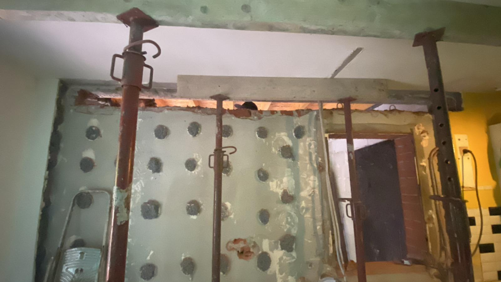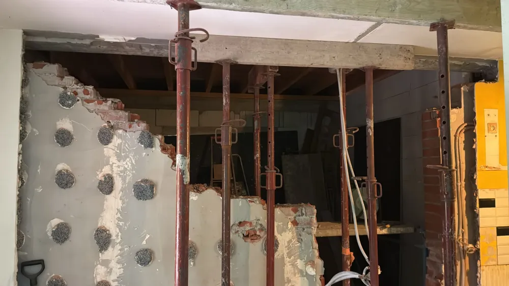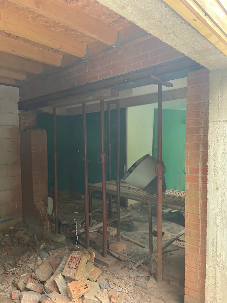 Sur ce chantier situé à Wasquehal, l’équipe ETS PILIA est intervenue pour réaliser la démolition complète d’un mur porteur en briques, dans le cadre d’une transformation intérieure visant à ouvrir l’espace entre deux pièces .